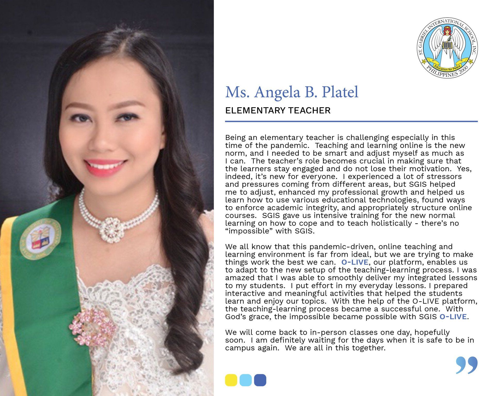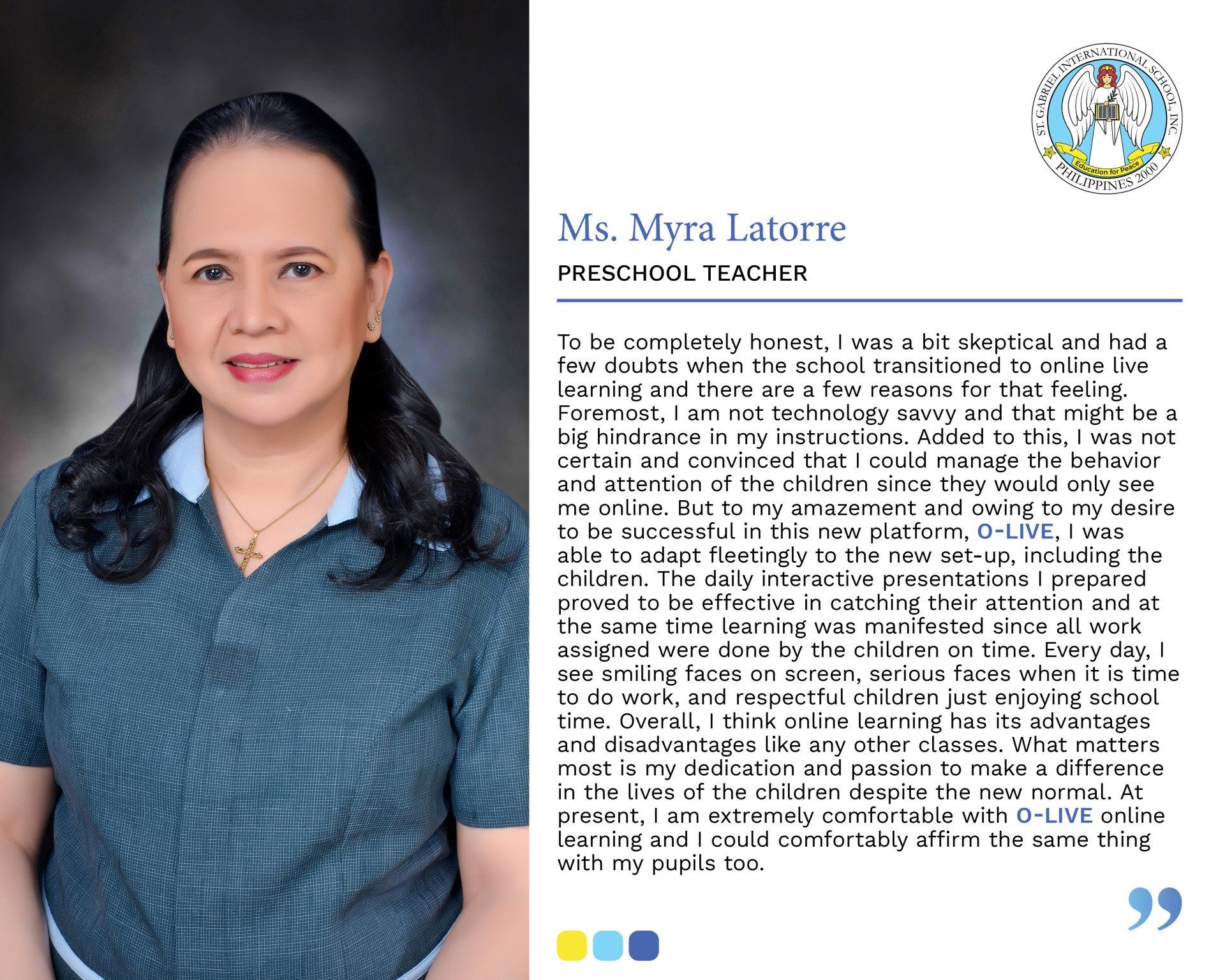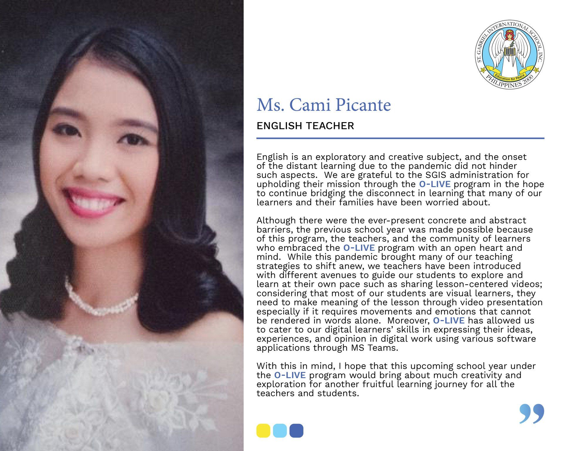 St. Gabriel International School strived to work hard to adapt to the need at hand – to quickly develop an online learning program for the New Normal. The SGIS O-LIVE (Online Learning in an Integrated Virtual Environment) program was launched in June 2020 using Microsoft Teams. The program was well-received by the Gabrielite community and was lauded by many as one of the best programs around.