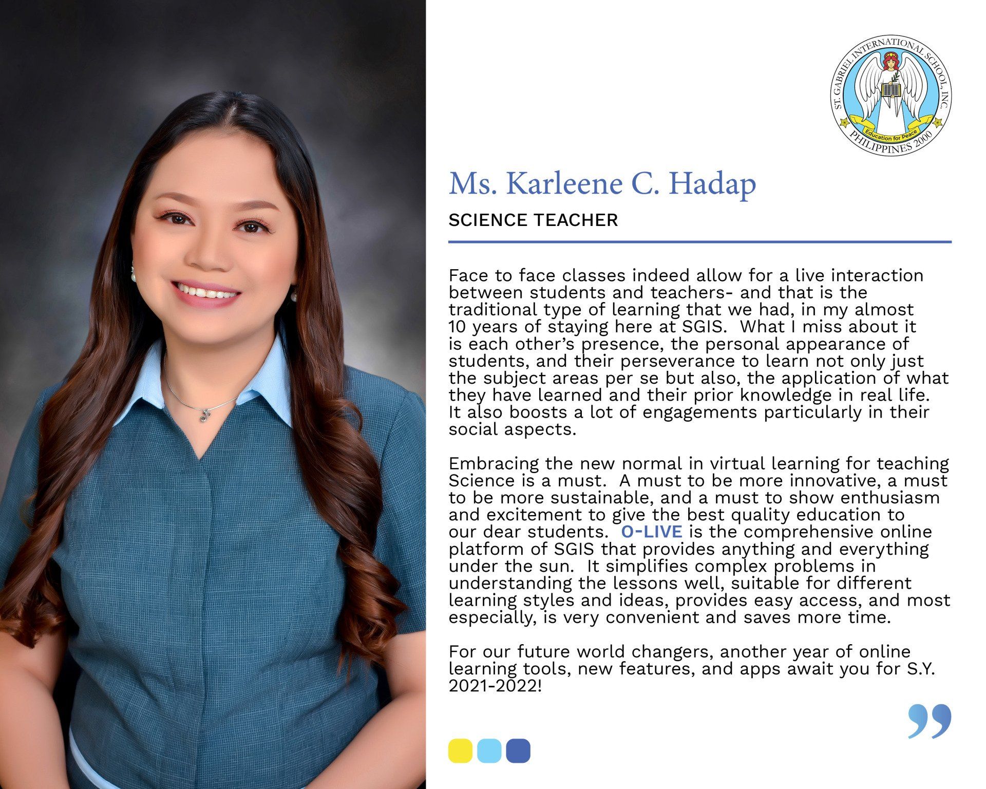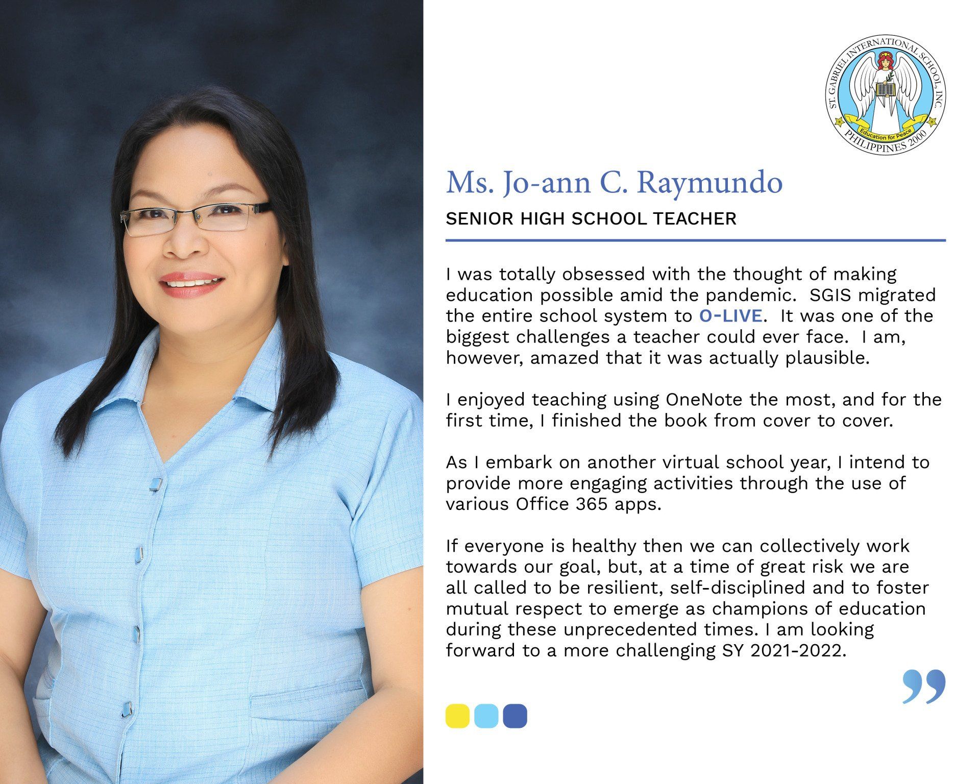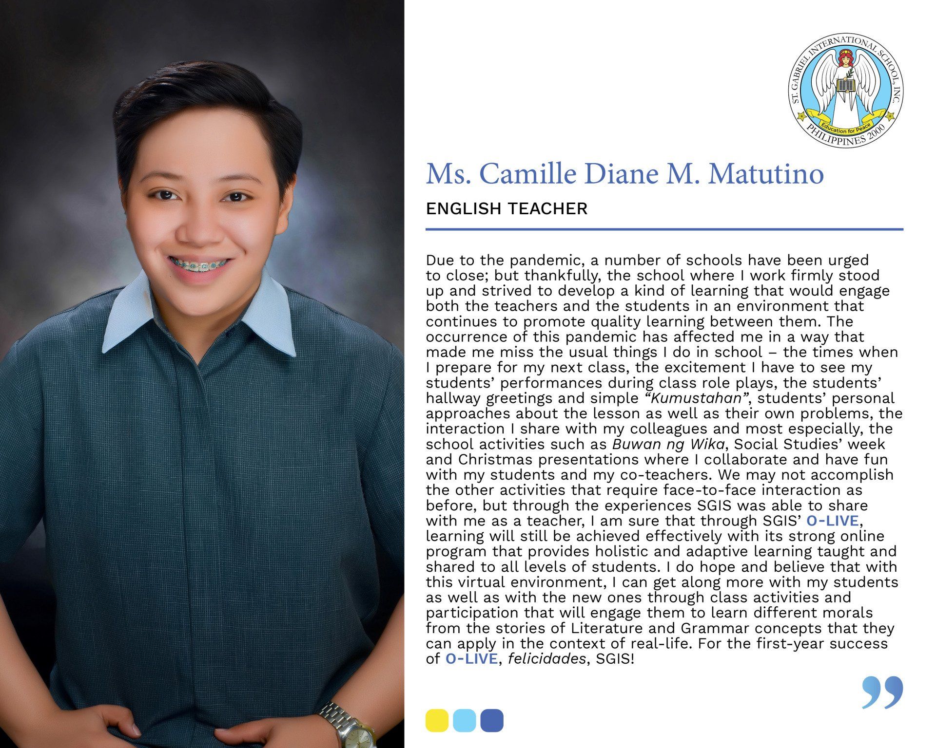 St. Gabriel International School strived to work hard to adapt to the need at hand – to quickly develop an online learning program for the New Normal. The SGIS O-LIVE (Online Learning in an Integrated Virtual Environment) program was launched in June 2020 using Microsoft Teams. The program was well-received by the Gabrielite community and was lauded by many as one of the best programs around.